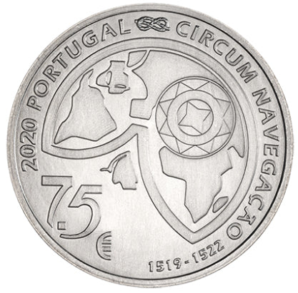 Proseguendo la serie che mette in risalto gli episodi più suggestivi della grande spedizione intrapresa da Fernão de Magalhães nel XVI secolo, appare ora la seconda moneta, che allude alla scoperta e all'attraversamento dello stretto navigabile che collega gli oceani Atlantico e Pacifico attraverso il continente americano, che prese il nome dal navigatore portoghese.